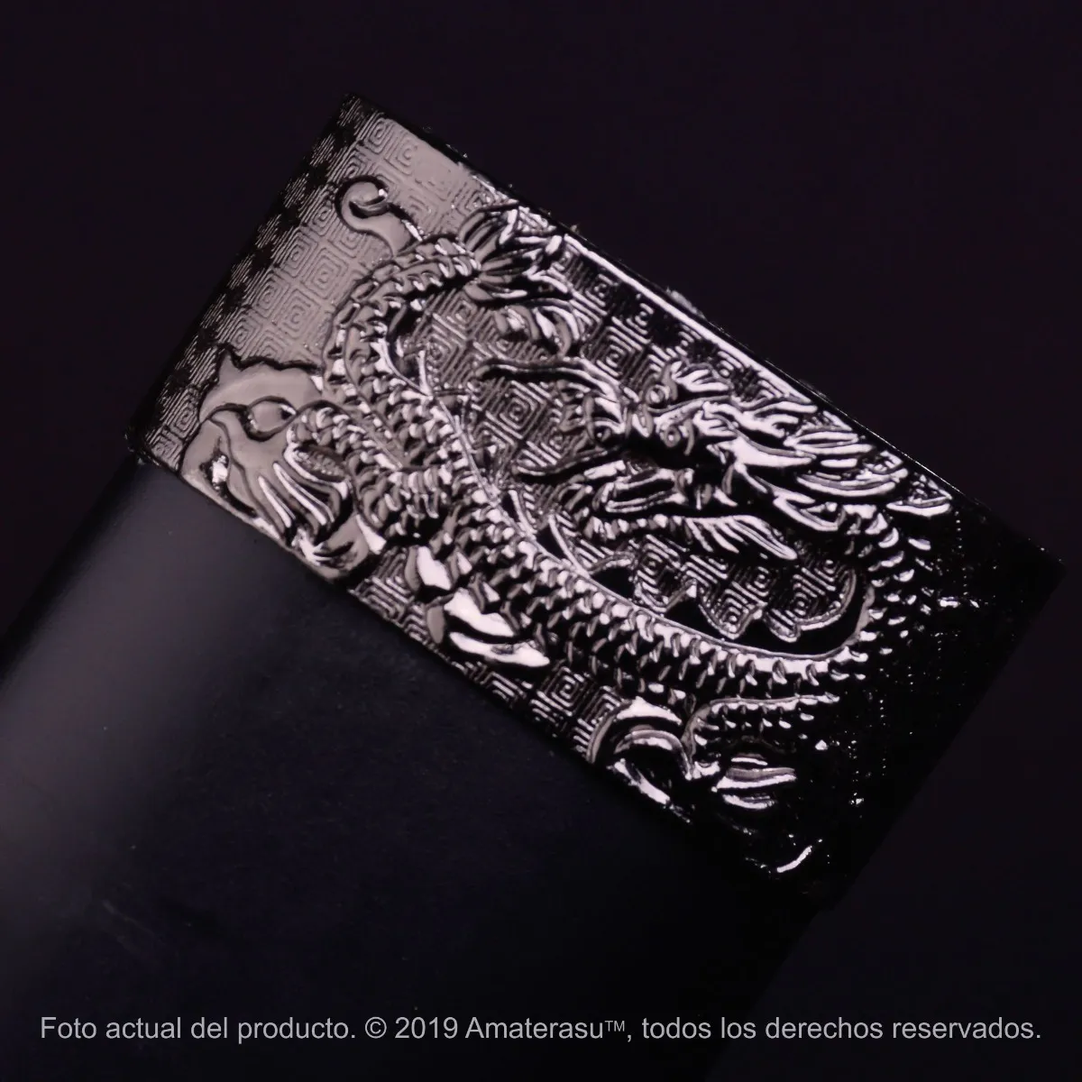 La saya, decorada con kanjis vinculados al bushido, refuerza la identidad simbólica de la pieza, convirtiéndola en un objeto cargado de significado más allá de su estética.