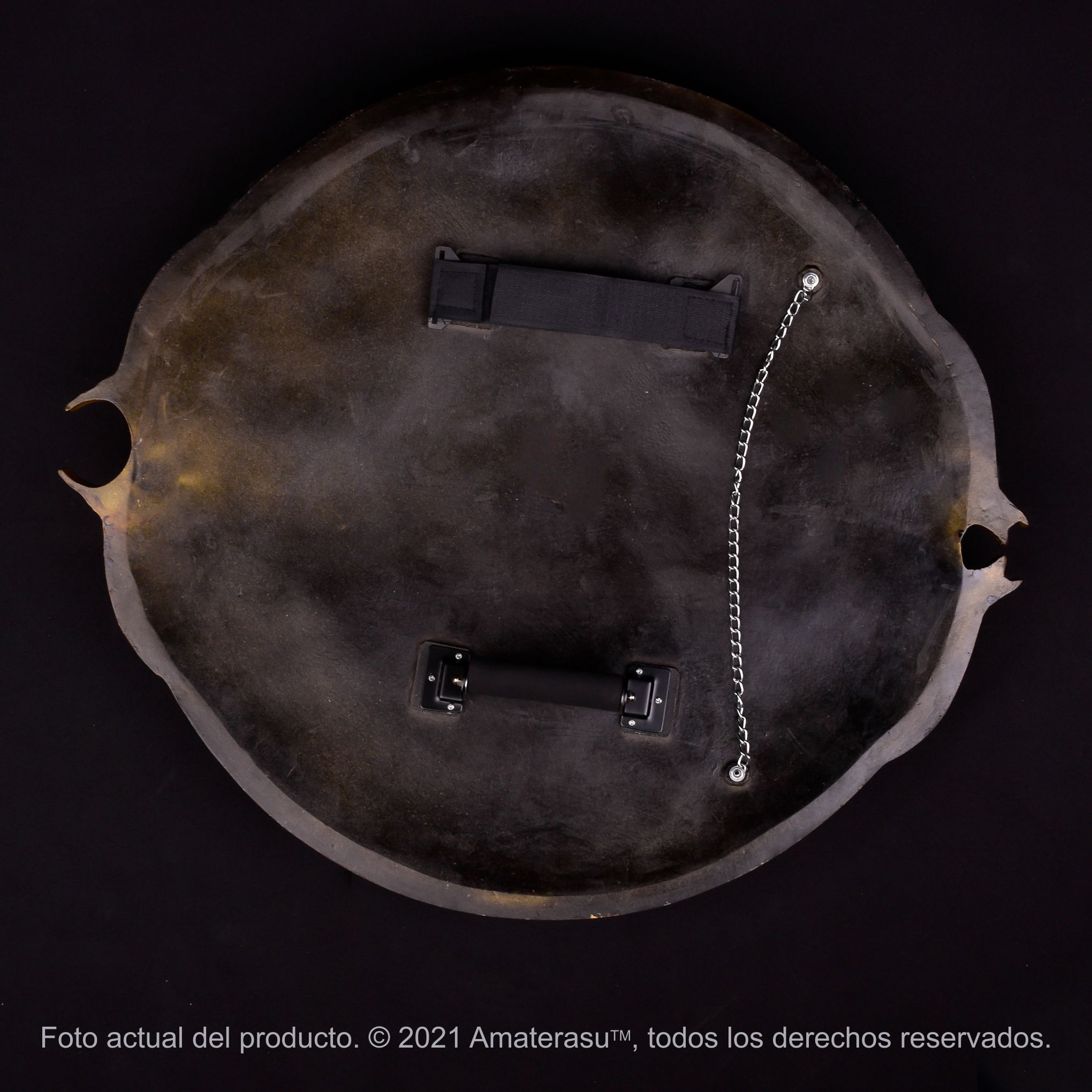 En la parte posterior incorpora correa y asa, facilitando su manipulación para cosplay, sesiones fotográficas, ambientación temática o exhibición en pared.