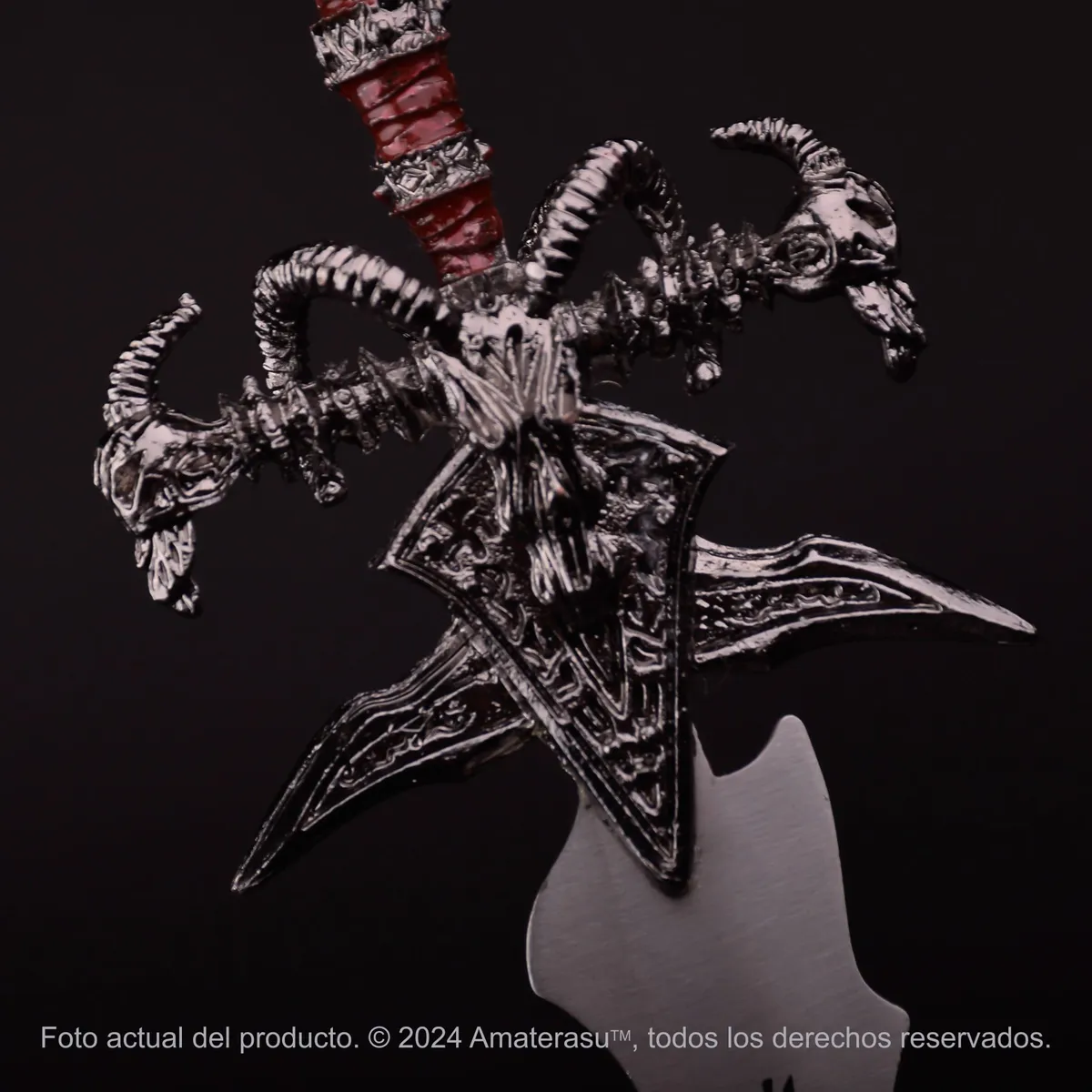 Fabricado íntegramente en metal, este Abre Cartas emana calidad y durabilidad. Su hoja de acero inoxidable presenta un diseño detallado que captura la esencia siniestra de FROSTMOURNE. Con medidas aproximadas de 22 cm de largo y 14.5 cm de hoja, este abre cartas es una adición imprescindible para cualquier coleccionista de Warcraft.