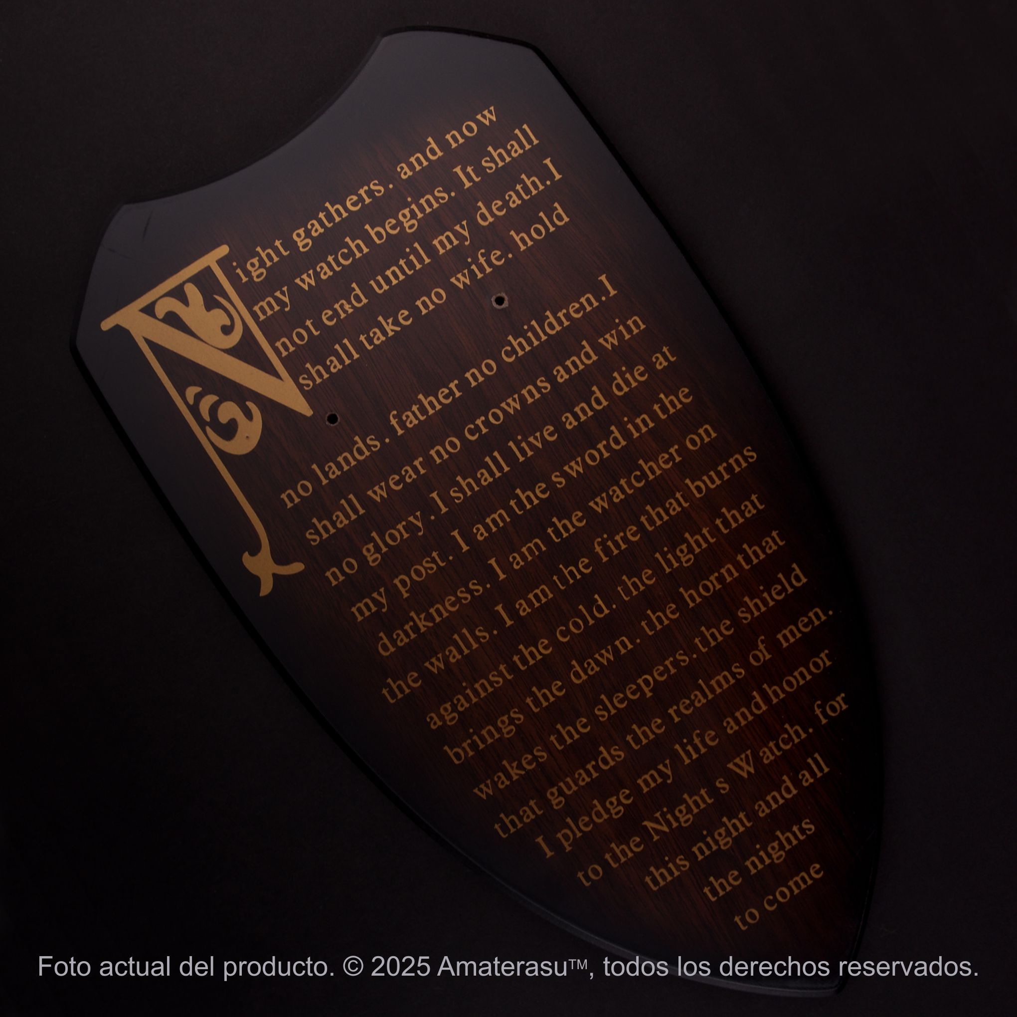- Accesorios: Incluye panoplia de madera serigrafiada (Night’s Watch Oath) y kit de instalación.