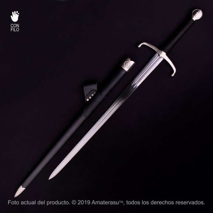 Aunque surgida de una obra cinematográfica, esta espada está construida con materiales reales y montaje consistente, ofreciendo peso auténtico, equilibrio visual y una fuerte presencia escénica.