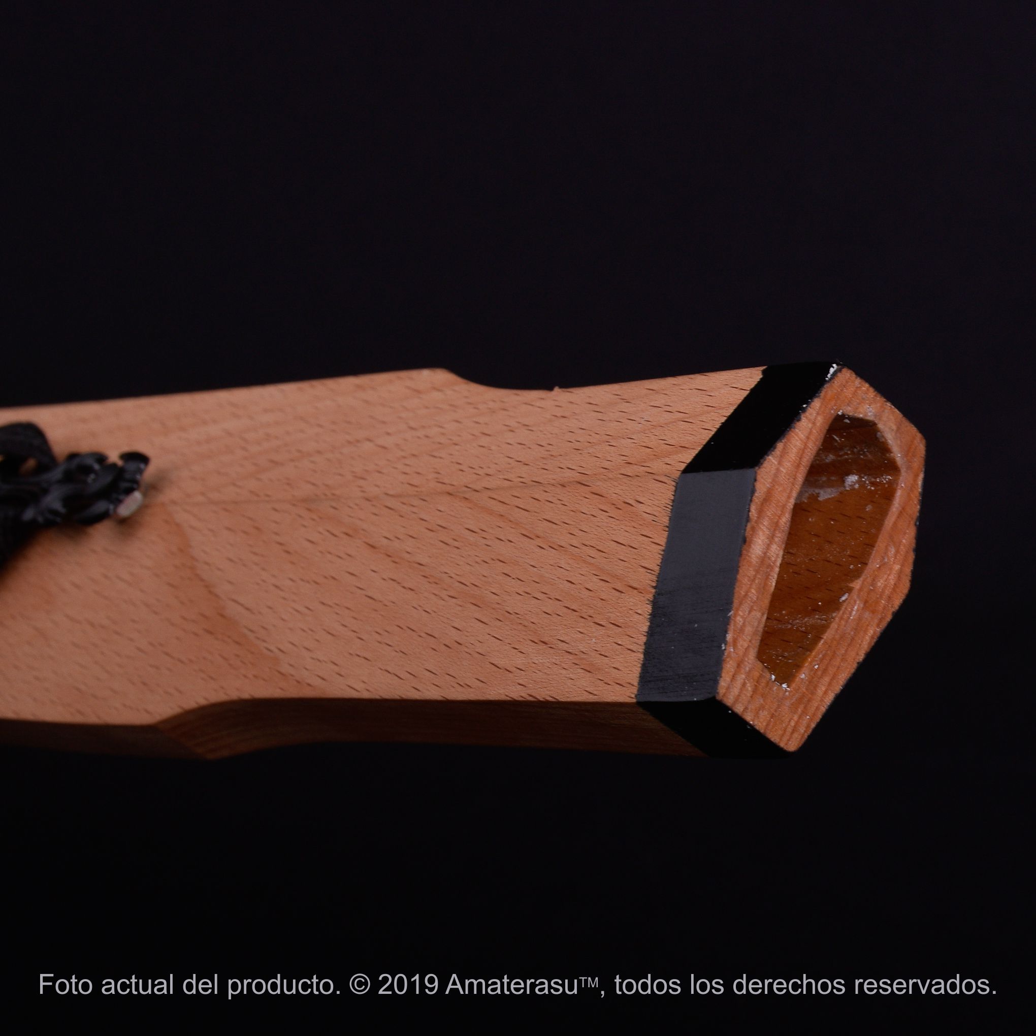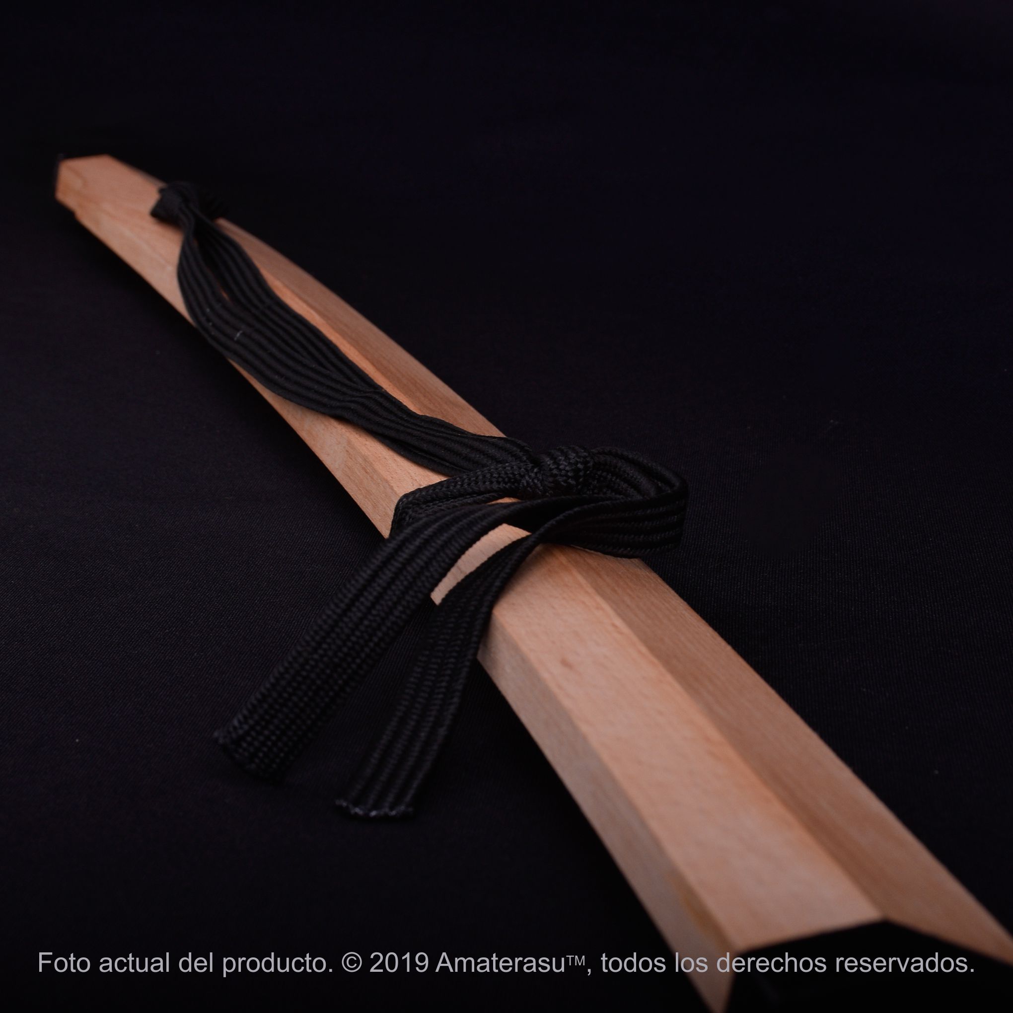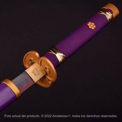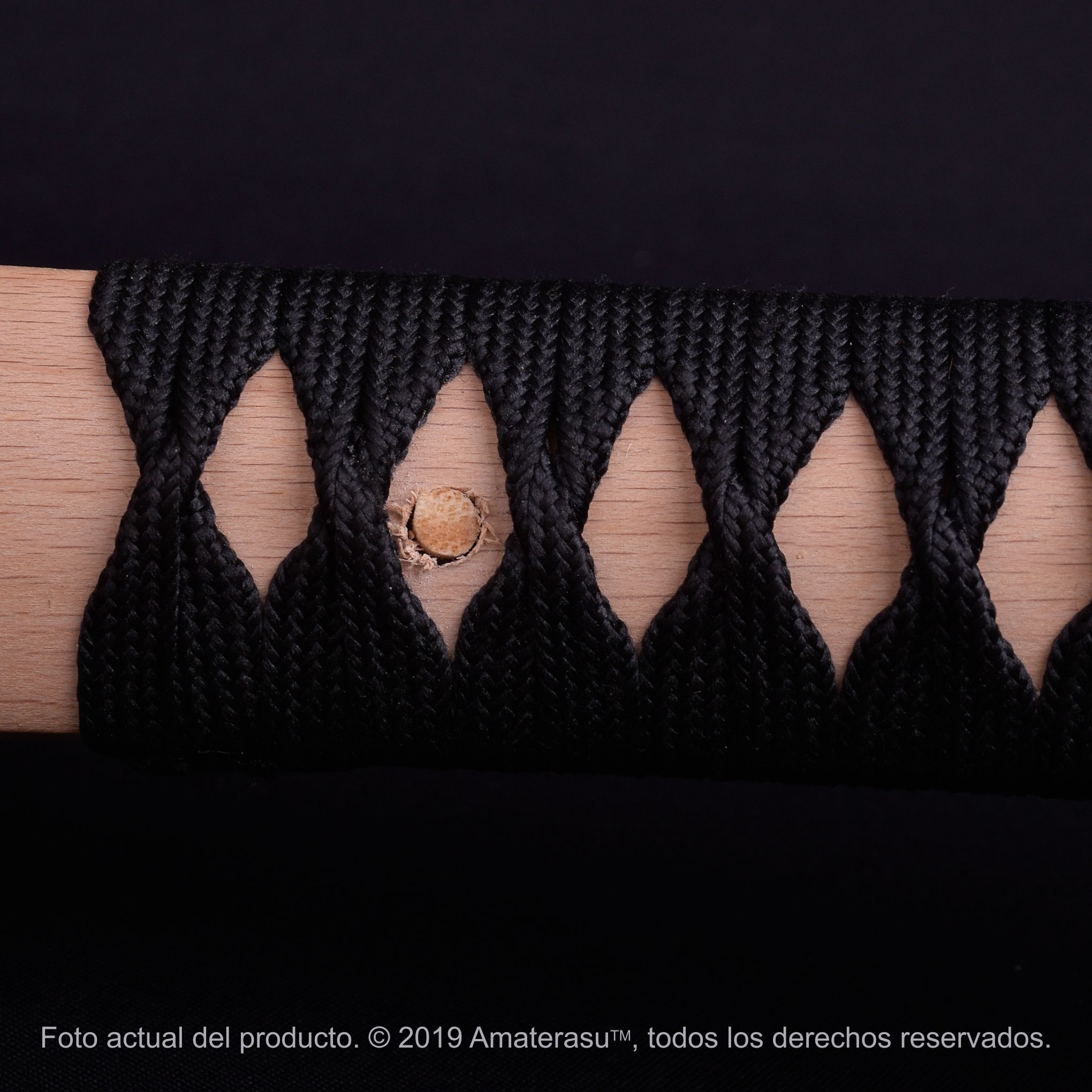 Forjada artesanalmente en acero al carbono 1045 normalizado, la hoja presenta filo real propio del material, un rasgo auténtico del acero trabajado, sin que ello implique una invitación a su uso. La tsuka de madera dura, envuelta en ito de seda ecológica, completa un montaje equilibrado y coherente con el universo visual de la película.