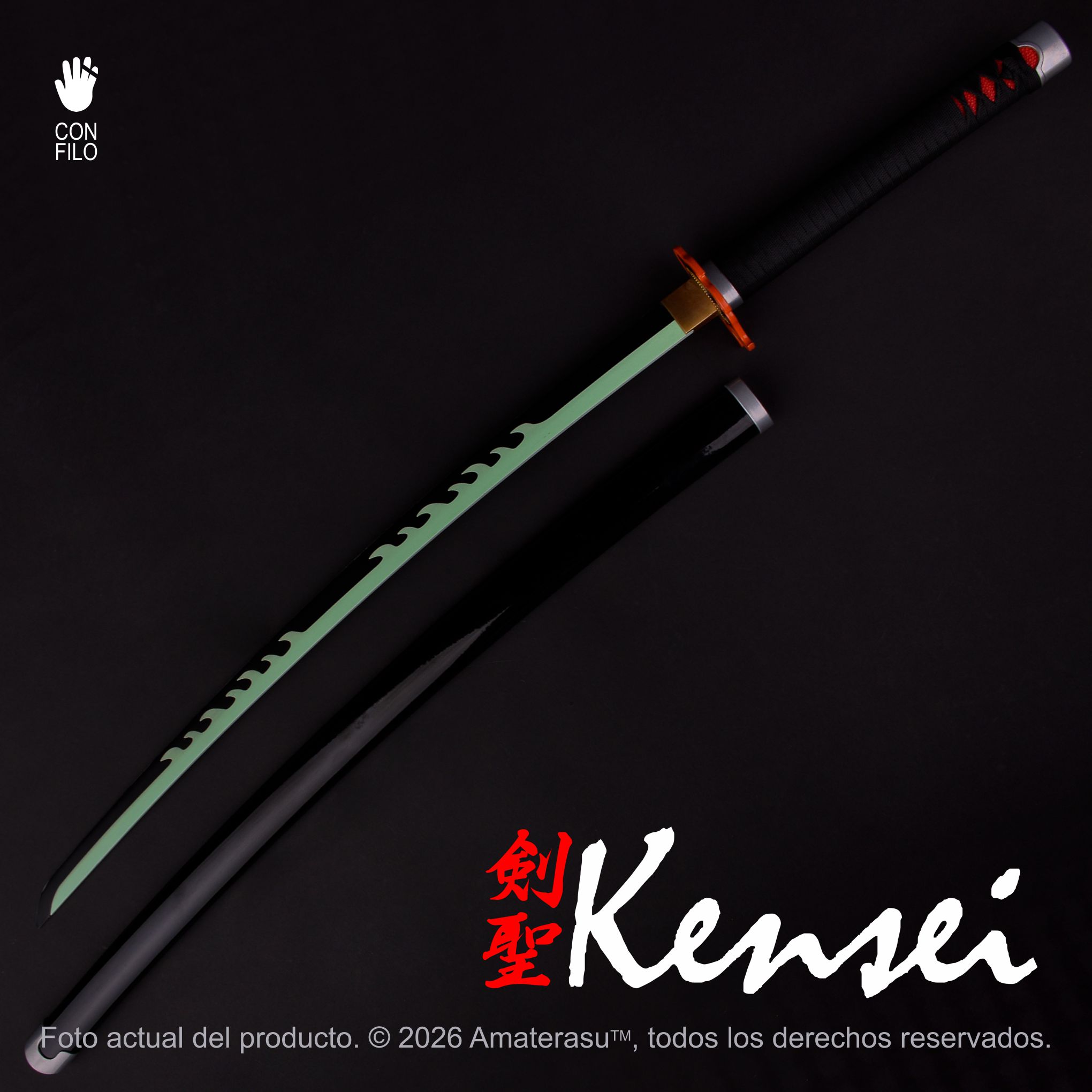 Esta katana forma parte de la línea Kensei de piezas inspiradas en universos culturales contemporáneos, donde la fidelidad estética se combina con materiales reales y una construcción honesta.