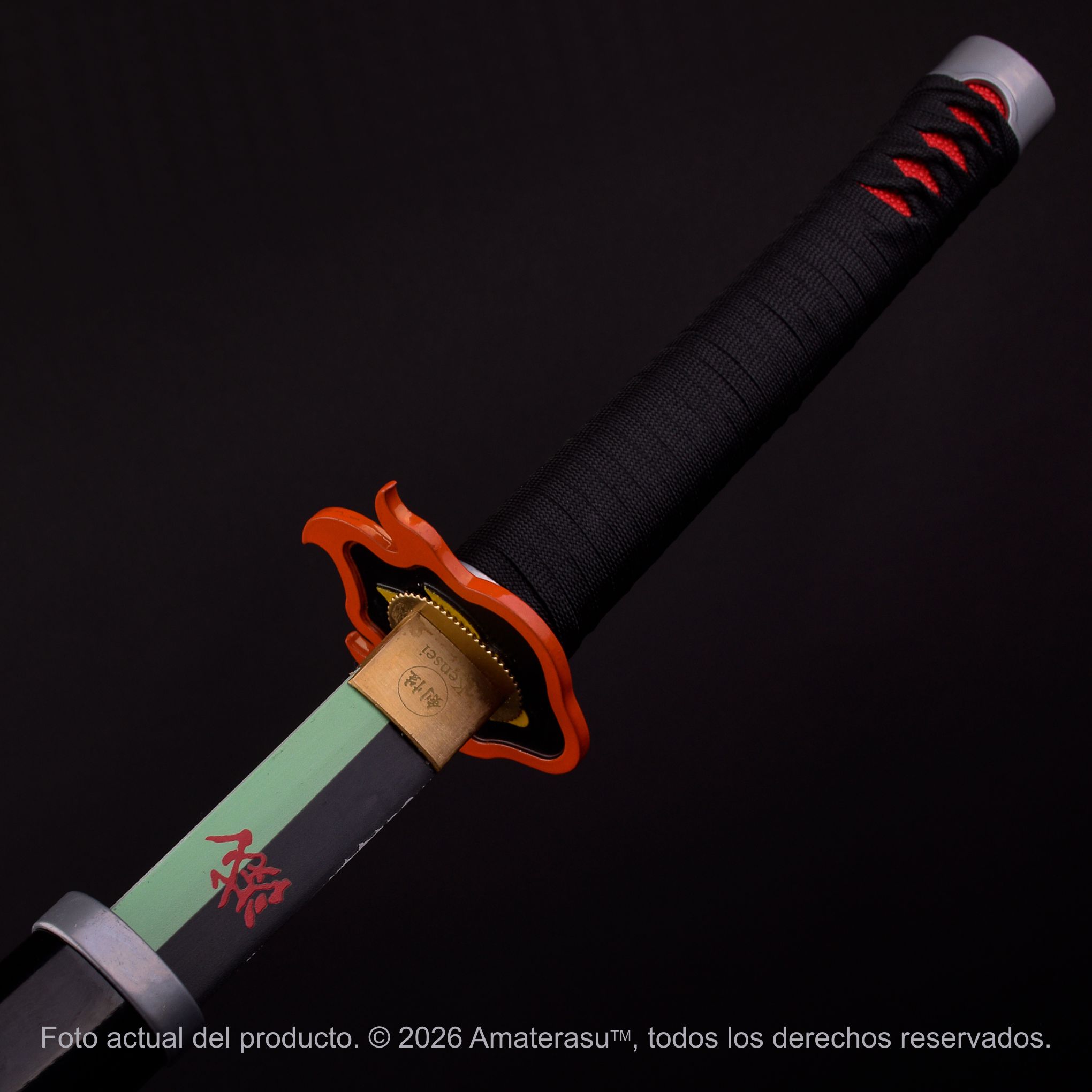 La Katana Kensei Nichirin – Segunda versión reproduce la estética evolucionada del anime, con hoja bicolor en acero real y una presencia visual intensa, ideal para colección y exhibición.