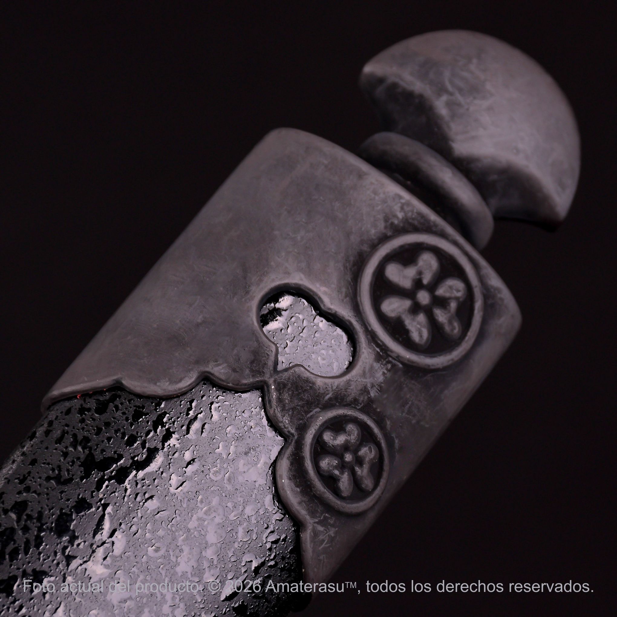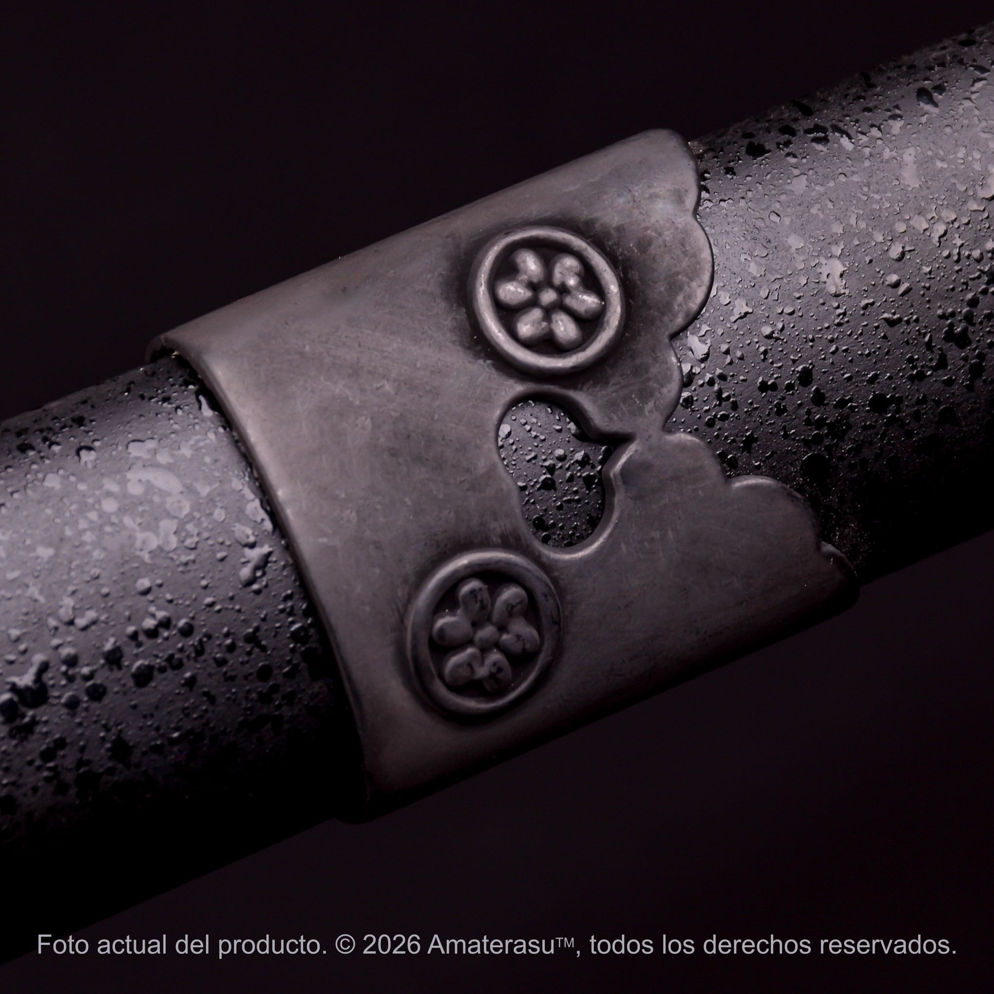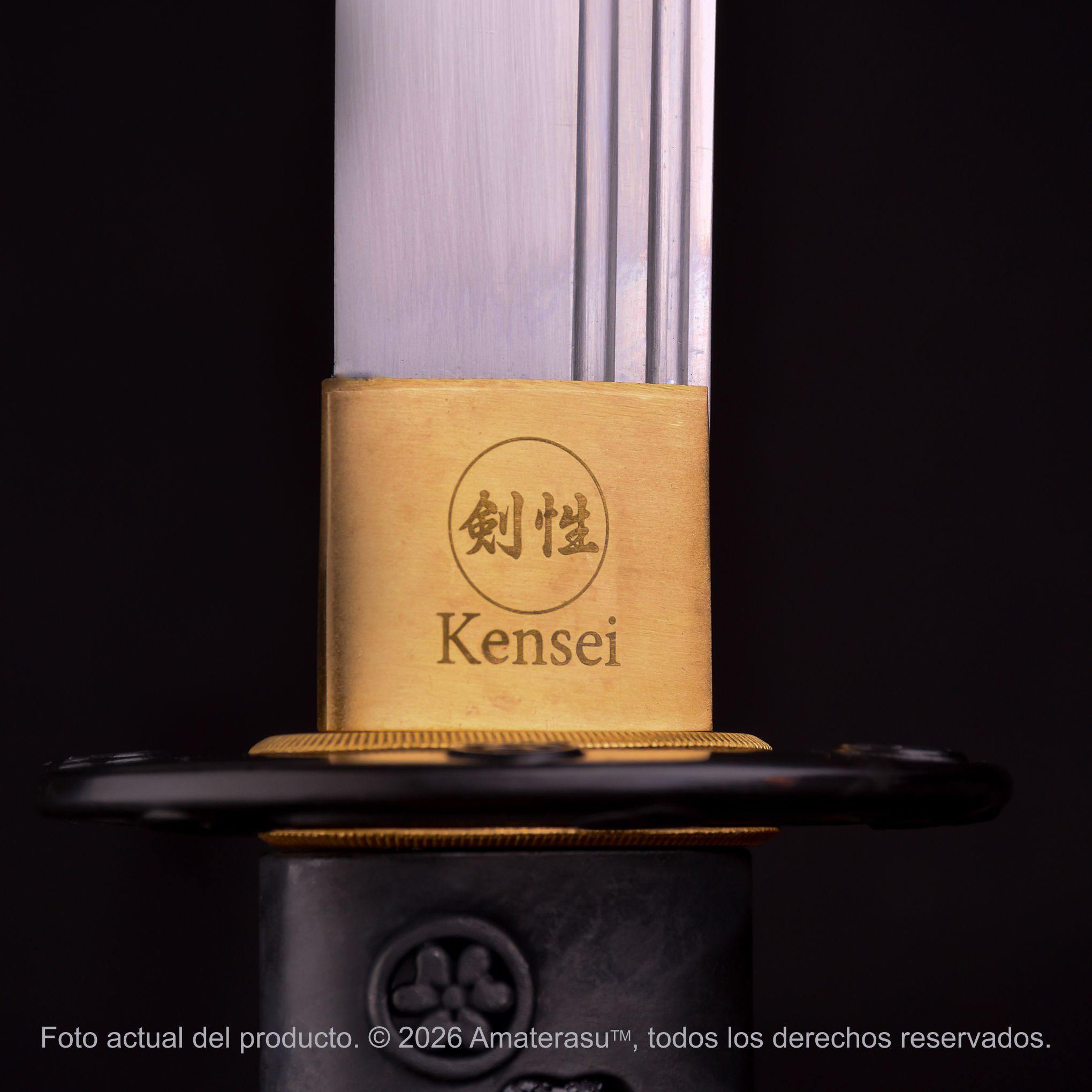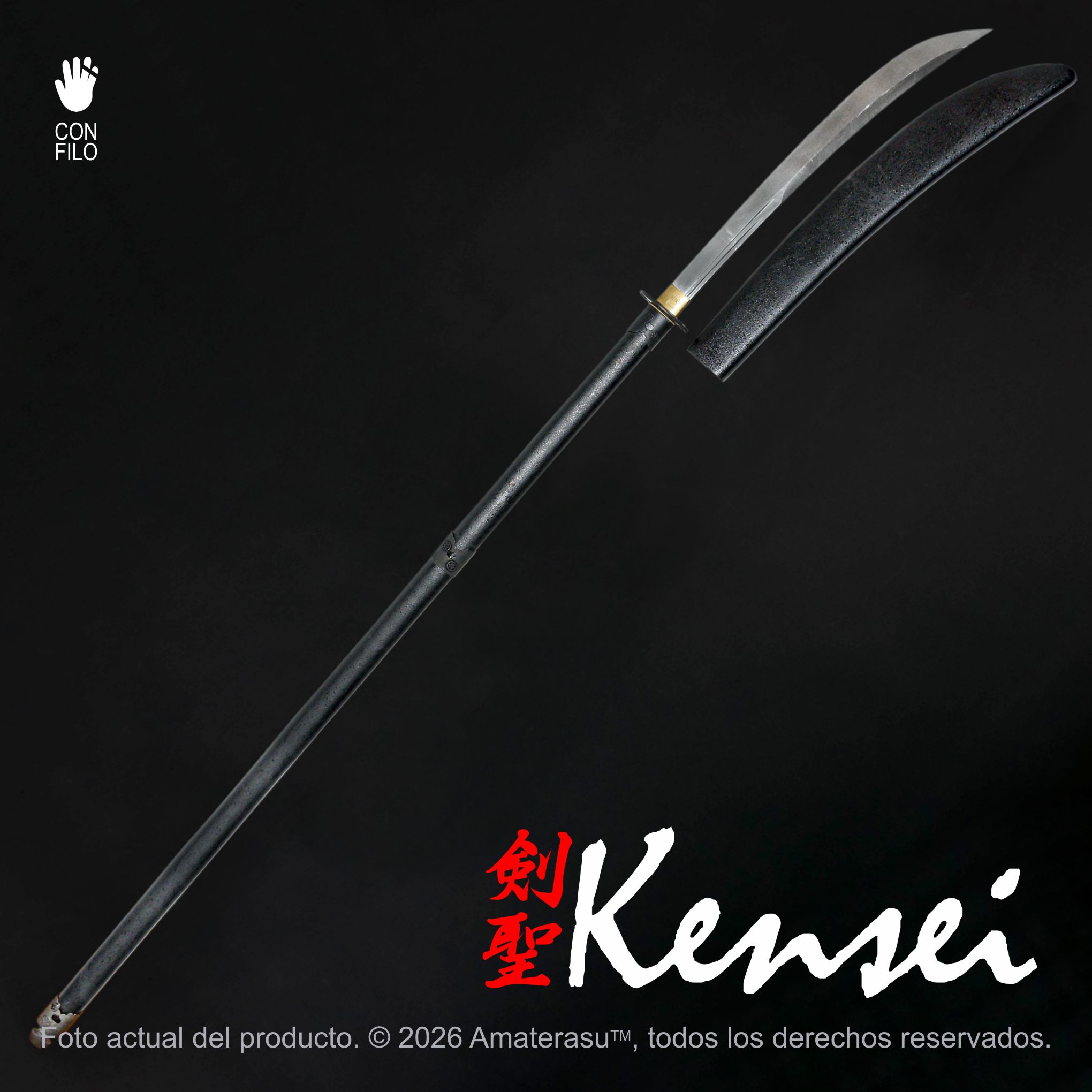 La Naginata Kensei Hana toma su nombre de las flores representadas tanto en la tsuba como en los apliques metálicos, integrando un lenguaje estético delicado dentro de una de las armas de asta más emblemáticas del Japón tradicional. Esta combinación entre fuerza y ornamento da lugar a una pieza visualmente armónica y de gran presencia.